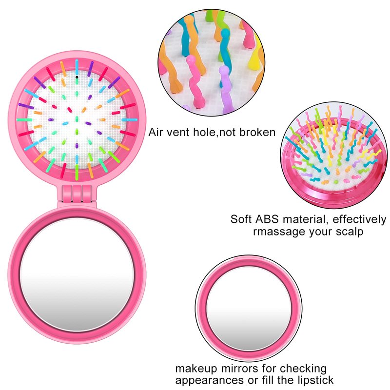 - 【Easy to Use】Round folding pocket hair brush easy to use, suitable for all kinds of hairstyles, thick, thin, curly, straight. With mirror bring convenience for your makeup.