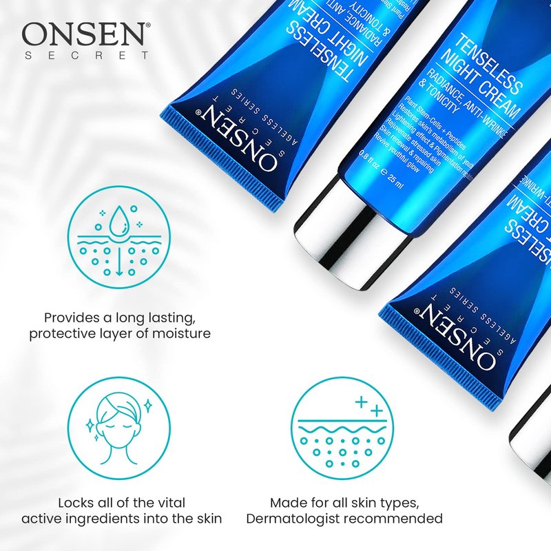 Onsen Secret Wrinkle Repair Tenseless Night Face Cream – Dermatologist Recommended Anti-Wrinkle, Radiance and Tonicity Cream – Anti Aging Ultra Boost Facial Creme for Dry Skin & Age Spots (0.8 Fl Oz)