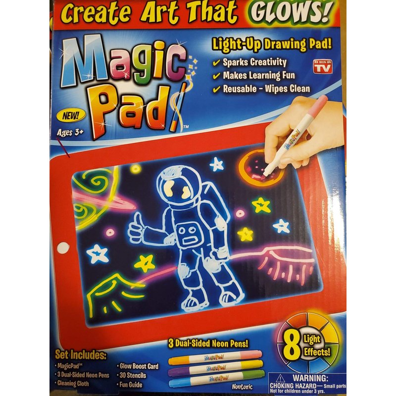 - MAGIC DRAWING PAD: Bring your art to life with Magic Pad! Magic Pad is a light up drawing pad that illuminates your art with a simple press of a button. Simply wipe the screen clean to create all over again!