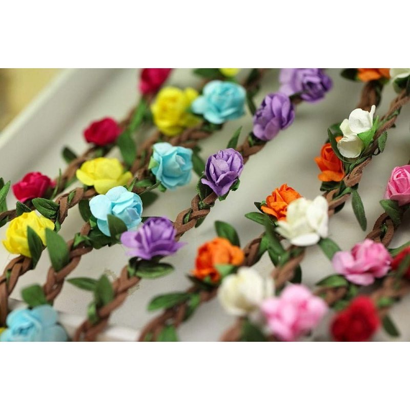 Onwon 8 Pieces Multicolor Bohemian Floral Headbands with Elastic Ribbon, Rose Crown Hair Accessories for Women Girls