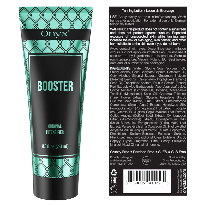 Onyx Booster Tanning Accelerator for Tanning Beds - Indoor Tanning Lotion without Bronzer - Hydrating Formula with Tattoo Protection - Enhances Tan and Skin Hydration with Melanin Boost