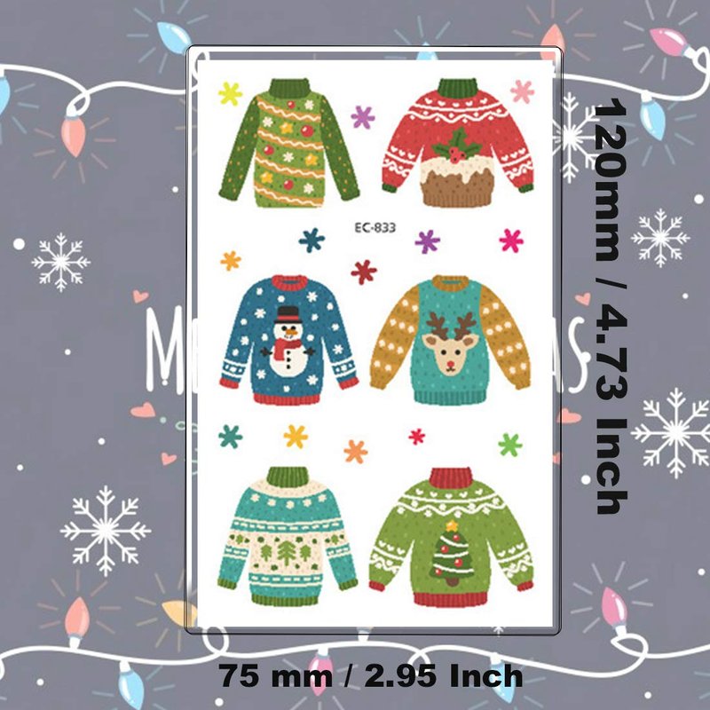 - ❤12 SHEETS (Merry Christmas Tattoos For Children , 4.72X2.95"in)-- Each sheet features Multiple large tattoos and is individually wrapped to be easily included in a kids stocking stuffers gift bag. Include Santa Claus, Snowman, Reindeer,Christmas tree,Christmas decoration