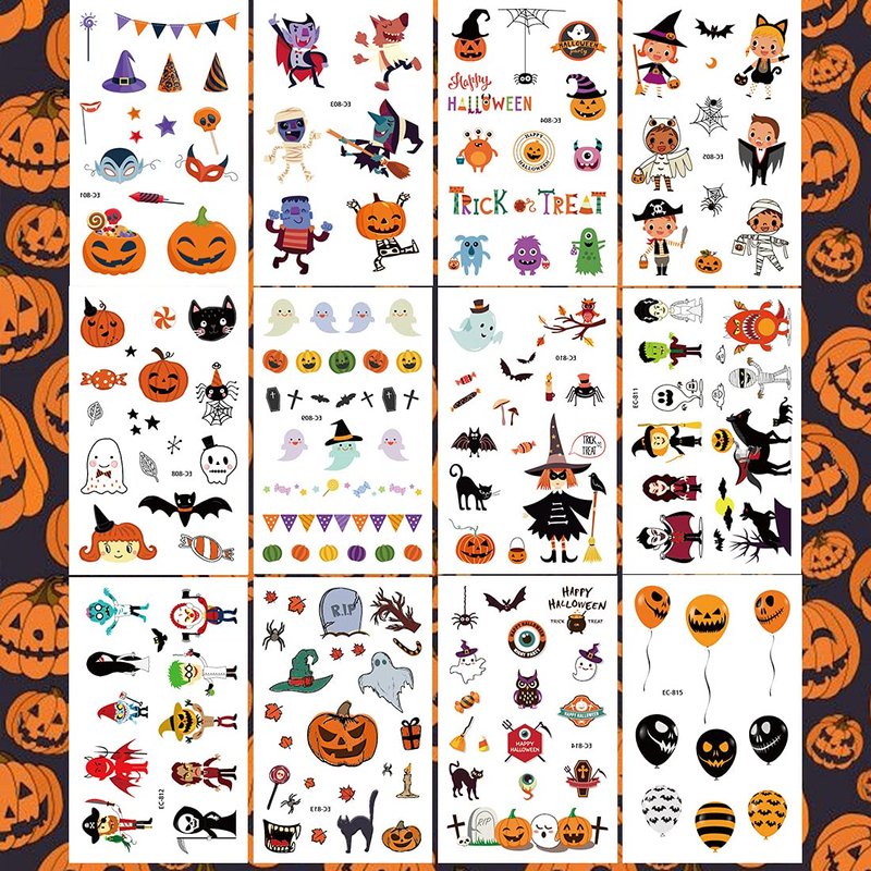 - 👻BEST GIFT for CHILD ( Halloween Tattoos for the Whole Party)-- Each sheet measures 4.73X2.95"in creating the perfect size tattoos! 12 sheet with individually wrapped to be easily included in a party gift bag. Contain various Halloween elements, such as pumpkin, candy, bat moon, castle, cat, tombstone, witch hat, skull, etc.Perfect body makeup tattoos for Halloween party and cosplay party!