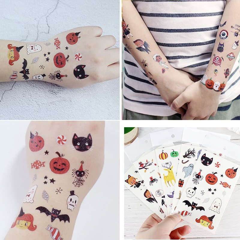 - 👻MORE SAFETY & HEALTHY CHOICE-- These halloween temporary tattoos are made of high quality safety and green paper, Non-allergenic,Non-toxic and totally safe for your kid's skin. Simply wet the tattoo with water and stick transferred them onto your body, hands, faces and arm you like, Tattoos will last from 3 to 5 days ,it also can be easily removed with baby oil, makeup remover or rubbing alcohol.