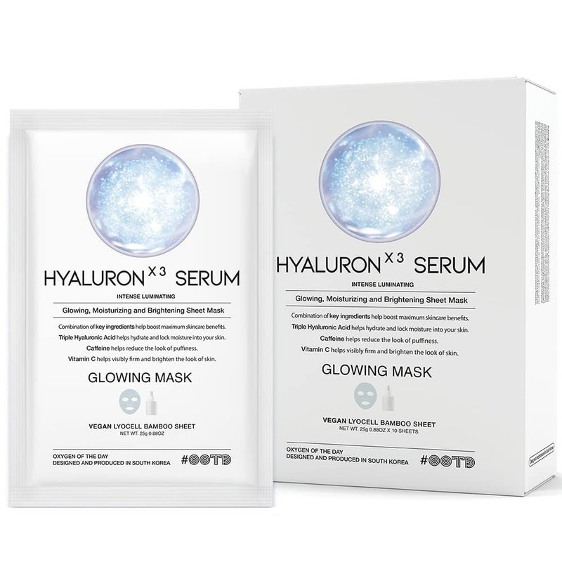 - Intensely Hydrating moisturizing sheet mask for a youthful SKIN GLOW. Experience rich serum mask with Triple Hyaluronic Acid, Caffeine and Vitamin C complex to brighten and help the skin to appear luminous and healthy.