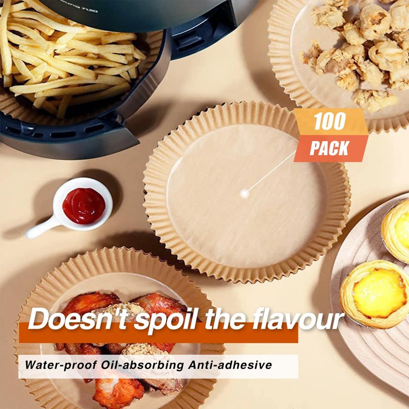 - 【SIZE INFORMATION】This air fryer liners are Round in shape, bottom width: 6.5 inches, top width: 8 inches, height: 1.77 inches,Suitable for 2-4 quart air fryers, each set provides 100Pcs air fryer paper, enough to use for a long time.