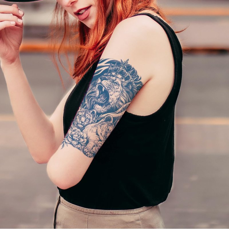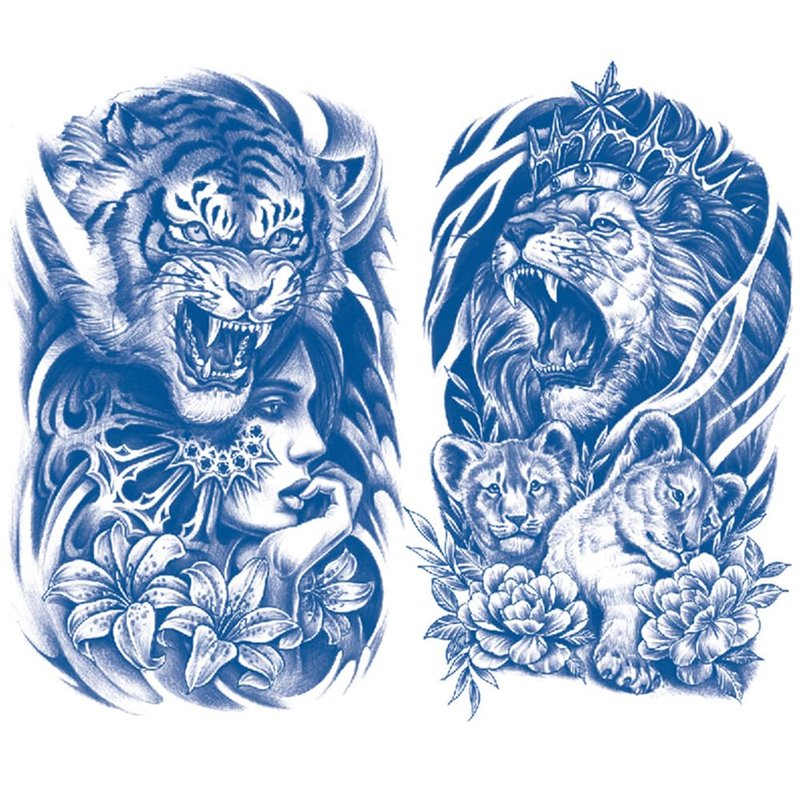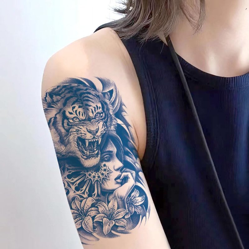 Oottati 2 Sheets Semi Permanent Waterproof Temporary Tattoos, 2 Weeks Long Last, 100% Plant-Based Ink Infinity Realistic Stickers, Tiger Lion Women Flower