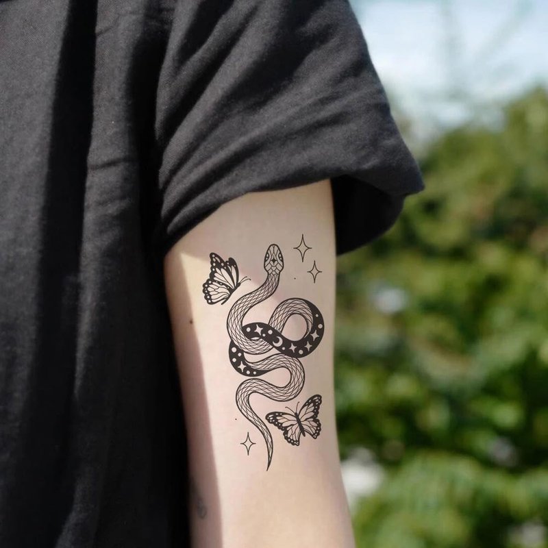 Oottati 2 Sheets Small Tiny Temporary Tattoo Stickers Black Snake Butterfly