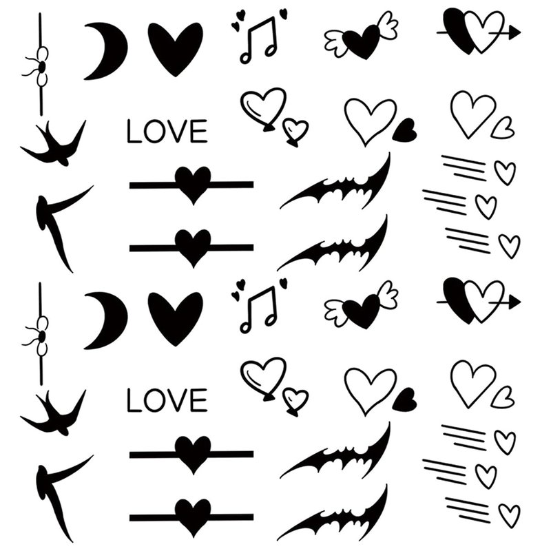 Oottati 2 Sheets Small Tiny Temporary Tattoo Stickers Heart Love Swallow Moon Totem