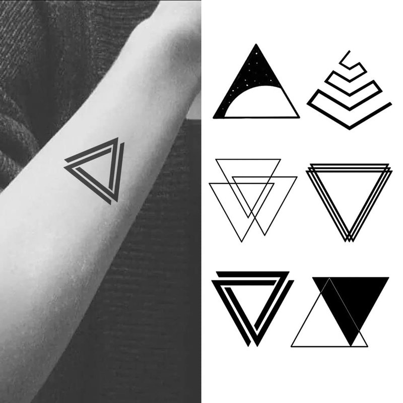 Oottati 2 Sheets Waterproof Small Cute Fake Hand Neck Temporary Tattoos Stickers Minimalist Geometric Shapes Black Triangle