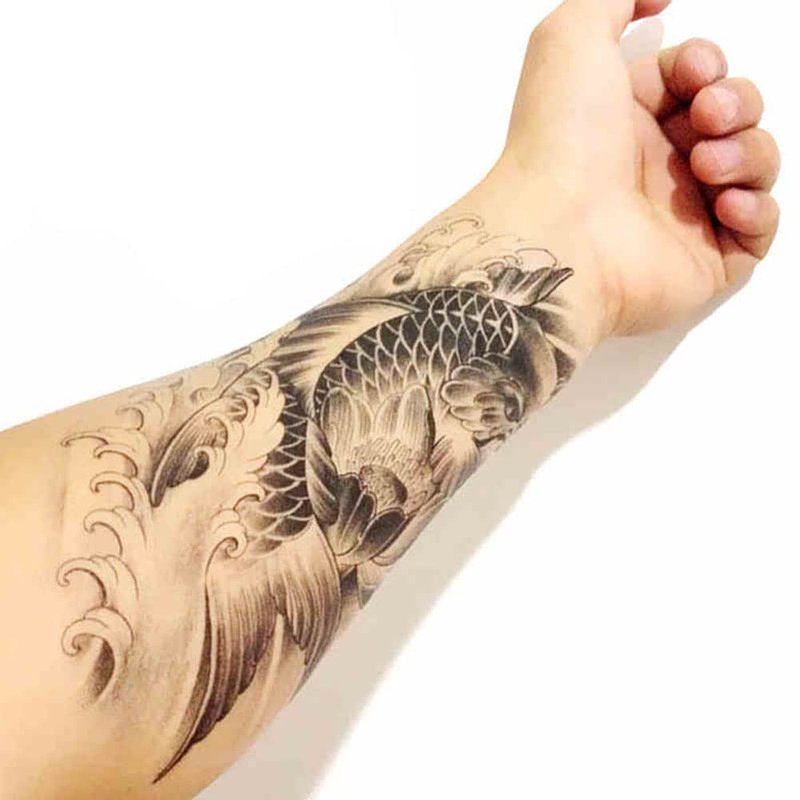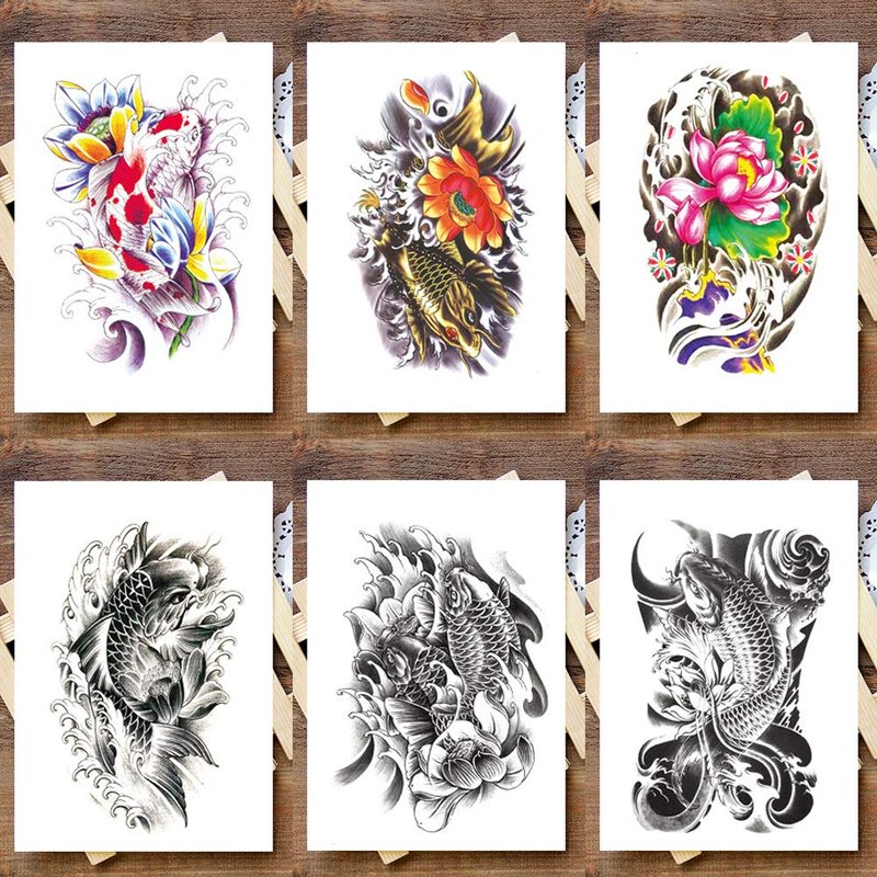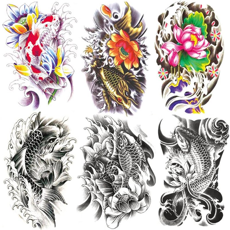 Oottati 6 Sheets 21x15cm Old School Koi Carp Lucky Golden Fish Arm Leg Temporary Tattoo Stickers Perfect for Parties, Events and More