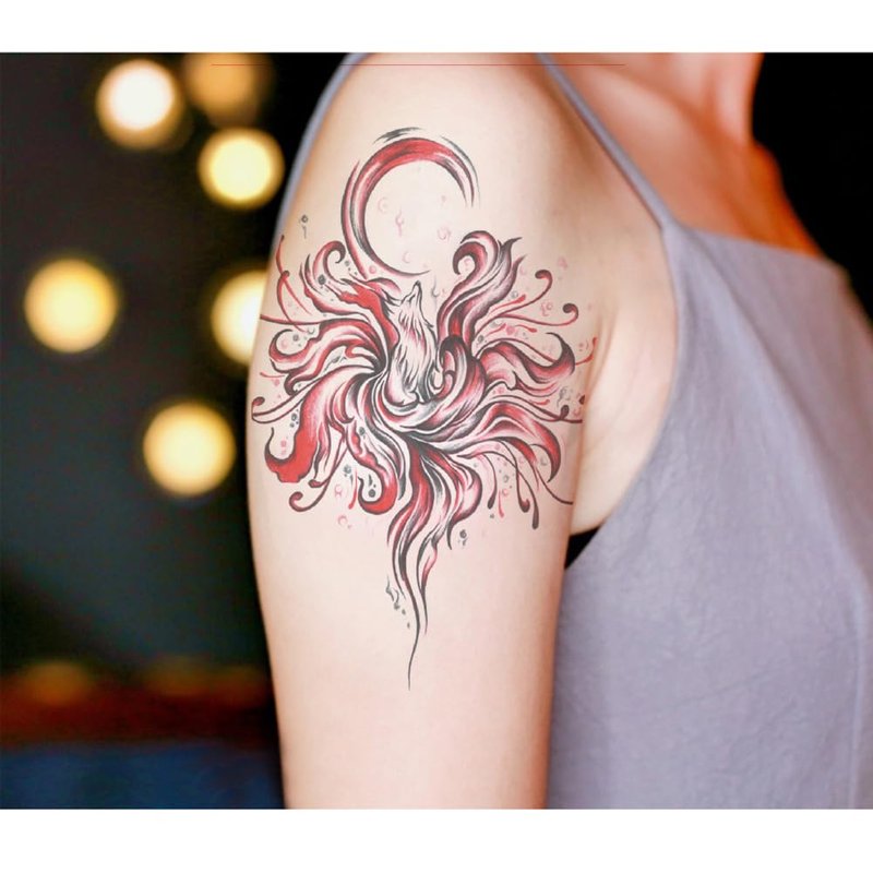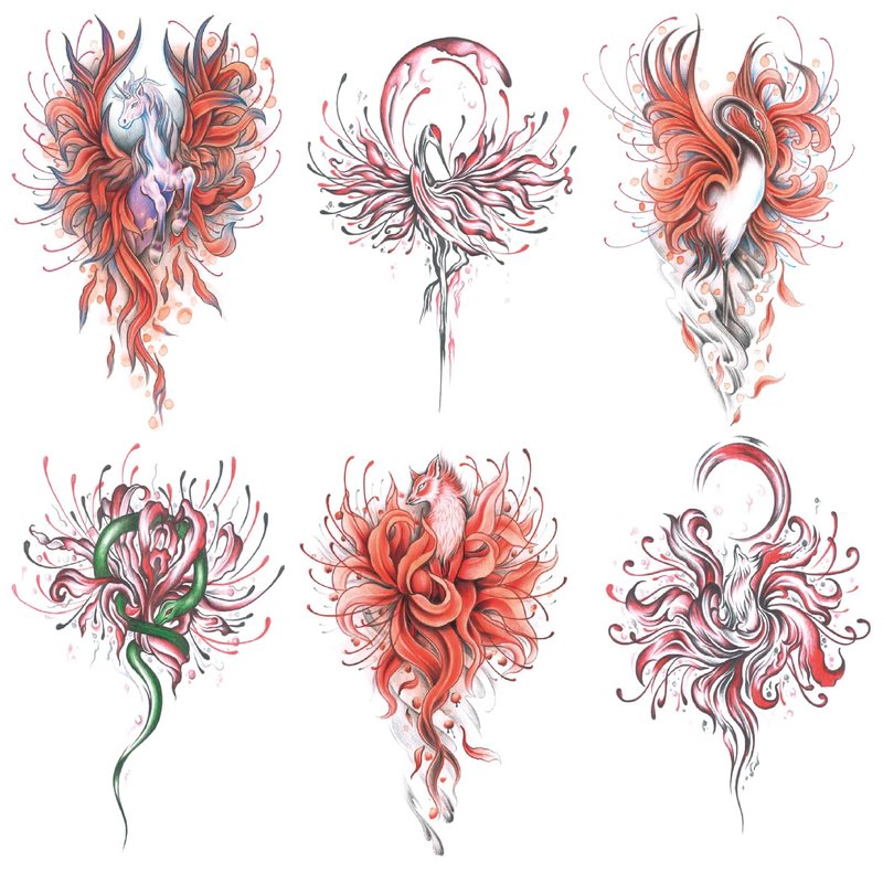 Oottati 6 Sheets Arm Waterproof Temporary Tattoos Fire Horse Crane Snake Fox Bianan Flower