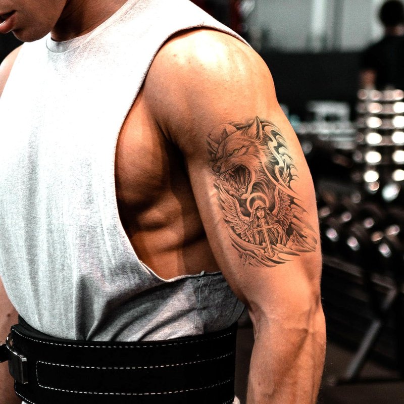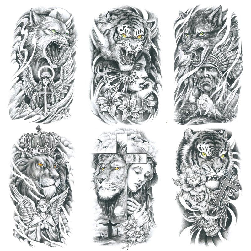 Oottati 6 Sheets Arm Waterproof Temporary Tattoos Wolf Maria Cross Women Tiger Flower India Lion Skull
