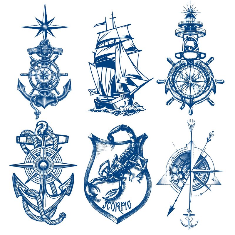 - Style: Ship boat anchor rope compass, Scorpion, Lighthouse, Sailor sea arrow, Natural fading