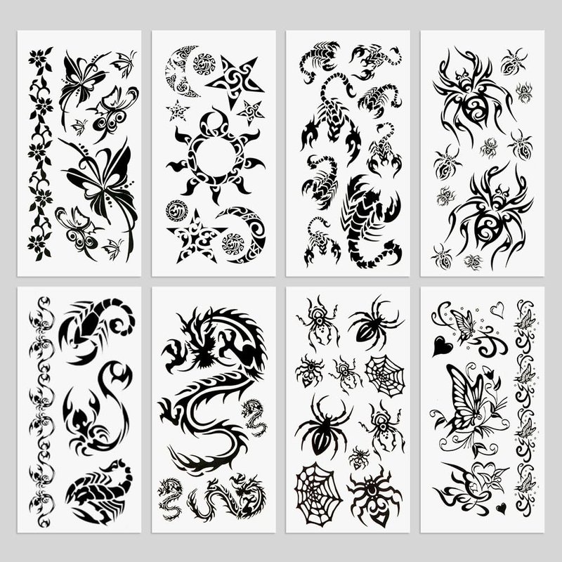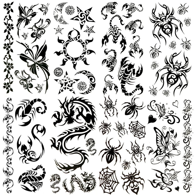 Oottati 8 Sheets Black Totem Temporary Tattoos Stickers Butterfly Sun Dragon Spider Scorpion