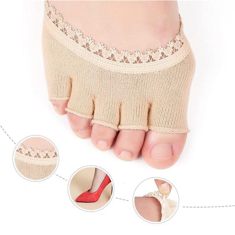 Open Five Toes Half Socks, Breathable Sweat-Absorbent Peep Toe Forefoot Socks Anti-Slip Lace Invisible Forefoot Pad, Relief Foot Pain Toe Separator Socks Women Flat High Heels Heelless Toeless Socks