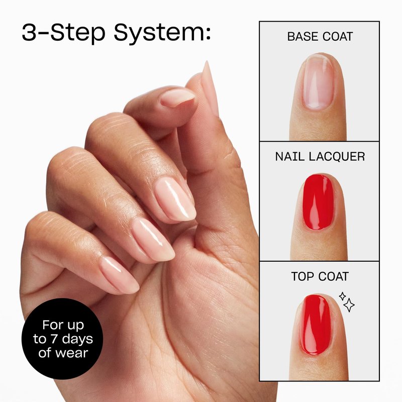 - A super-rich, long lasting and chip resistant nail polish with up to 7 days of wear when using 3-step system
