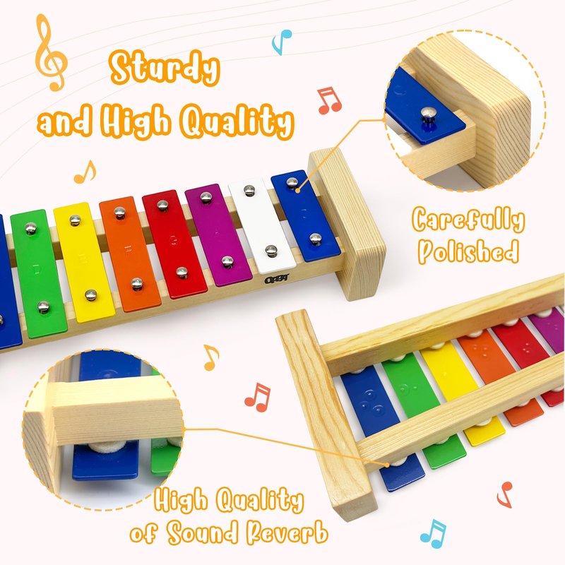 - Safe and Sound Quality: Crafted from premium wood with non-toxic finishes, our xylophone is built to be safe and sturdy for little ones. The wooden mallets are better suited for small hands, ensuring comfort and producing superior sound compared to plastic alternatives.