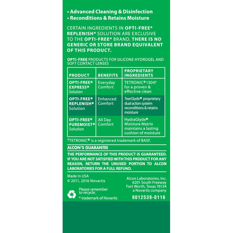 - Opti-Free Replenish provides enhanced comfort with top-notch cleaning and disinfecting power