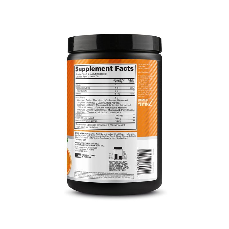- Amino Blend: a mix of amino acids to aid in recovery