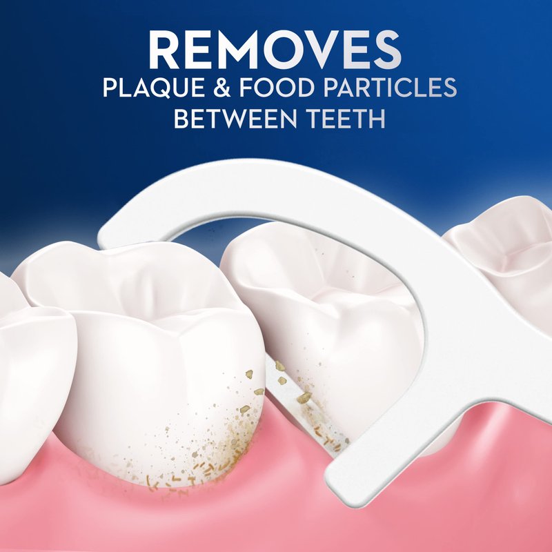 - Helps remove plaque and food particles between teeth