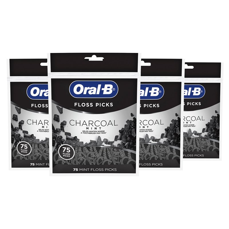 - You Will Receive four 75 Count bags of Oral B charcoal infused mint floss picks