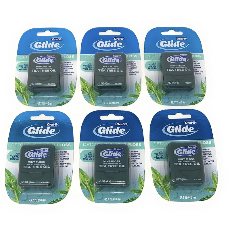 - Oral-B Glide Detoxifying* Mint Floss with the Freshness of Tea Tree Oil gently removes harmful bacteria just below the gumline and slides 50% more easily between tight teeth.
