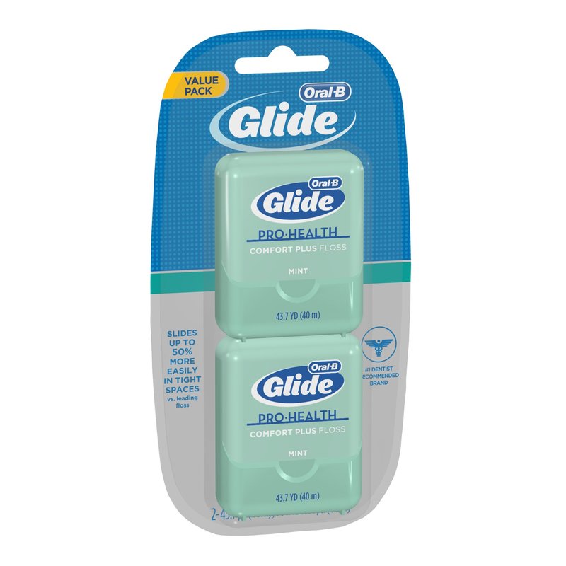 Oral-B Glide Pro-Heath Comfort Plus Floss is extra soft and gentle on gums, yet tough on plaque. Experience the Glide difference with this unique floss that's smooth, strong, and shred resistant.