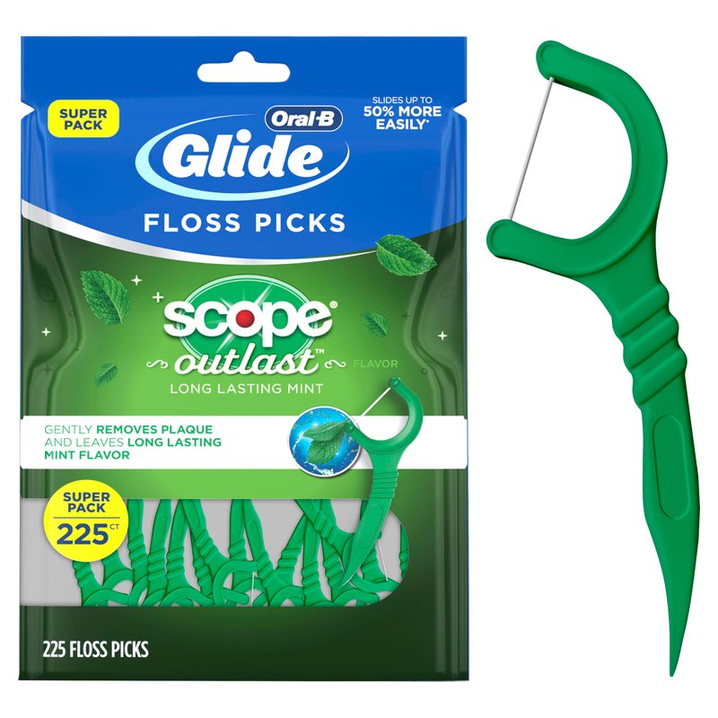 Oral-B Glide with Scope Outlast Dental Floss Picks, Mint, 225 Picks