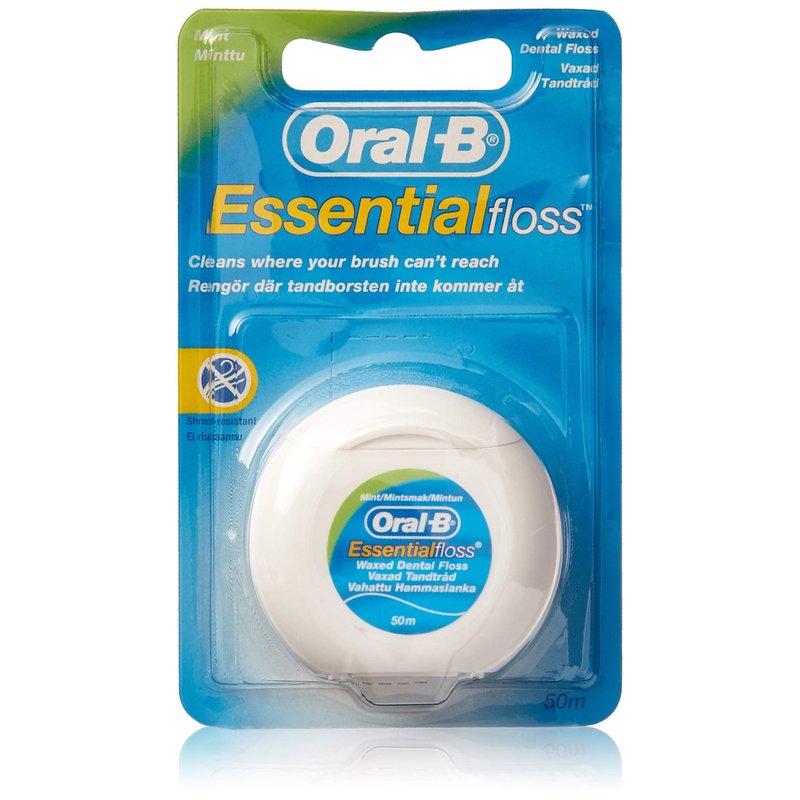 Brushing alone can't get to all the hard-to-reach places where plaque builds up. Oral B Essential Waxed Mint Floss can. With its light wax coating and its shred-resistant texture, it slides easily between your teeth and below the gum line. It helps clean the tough-to-get plaque away. Used morning or evening when you brush, Oral B Essential Waxed Floss helps your gums and teeth stay healthy.
