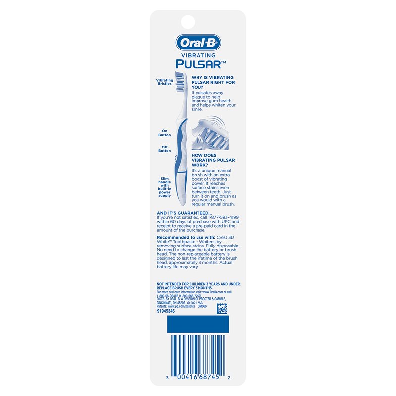 Oral-B Pulsar Whitening Battery Toothbrush, Medium, 1 Count