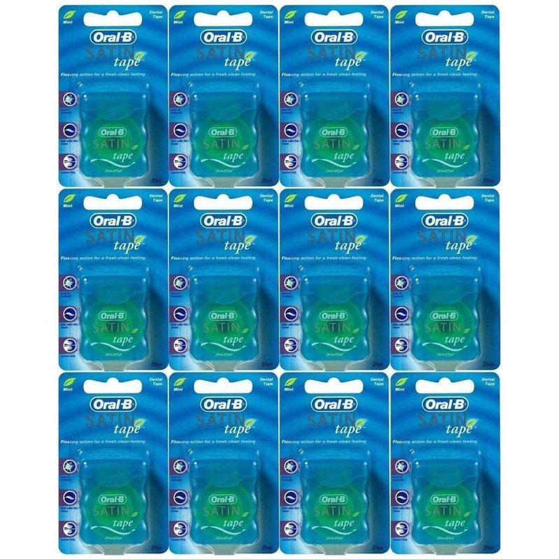Oral-B Statin Tape Dental Floss 25m (12 Units) by Oral-B Satin Tape Mint