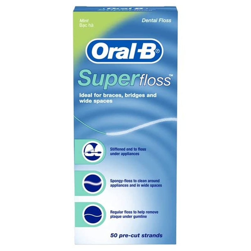Oral-B Super Floss Mint Dental Floss for Braces Bridges - 50 Strips ( 2-pack )