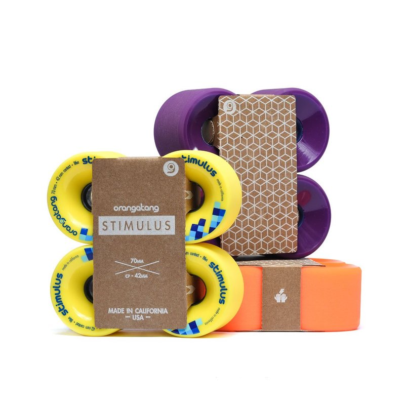 - VERSATILE FREERIDE WHEELS – The Orangatang Stimulus is the perfect mid-sized longboard wheel for freestyle tricks, dancing, and freeriding. Includes Loaded Jehu V2 bearings with integrated spacers and speedrings.