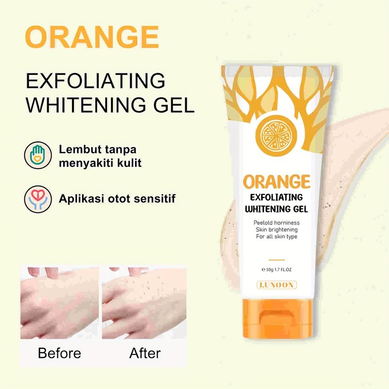 Orange Exfoliating Gel, orange exfoliating gel scrub,Deep Cleansing Moisturizing Facial Exfoliator, Size 50g, 1.7 Fl Oz Ingredients:WATER, DIPROPYLENE GLYCOL CARBOMER, SUCROSELACTC AGID, CITRIC ACID, NIACINAMIDE, 3-0-ETHYLASCORBIC ACID, GLUTATHIONE, MARIS SAL, CI77492PEG-150.ETHYLCELLULOSE,MICA,CI77891, CITRUSAURANTIUM DULCS(ORANGE)PEEL OIL HAMAMELISVRGINLANA (WITCHHAZEL)WATER, PEARL POWDERJOJOBA ESTERS, BUTYLENE GLYCOL, TOCOPHERYLACETATE ASCORBYL PALMITATE, TOCOPHEROL,GLYCYRRHIZA GLABRA (LICORICE) ROOT EXTRACT,METHYLPARABEN,CETRIMONIUM CHLORIDEALCOHOL PEG-40 HYDROGENATED CASTOR OIL,STEARTRIMONIUM CHLORIDE, PHENOXYETHANOL,FRAGRANCE,ETHYLHEXYLGLYCERIN, GLYCOLIC ACIDLACTOSE ZEA MAYS(CORN) STARCH, C177499DISODIUM EDTA CELLULOSE, TITANIUM DIOXIDEHYDROXYPROPYL METHYLCELLULOSE