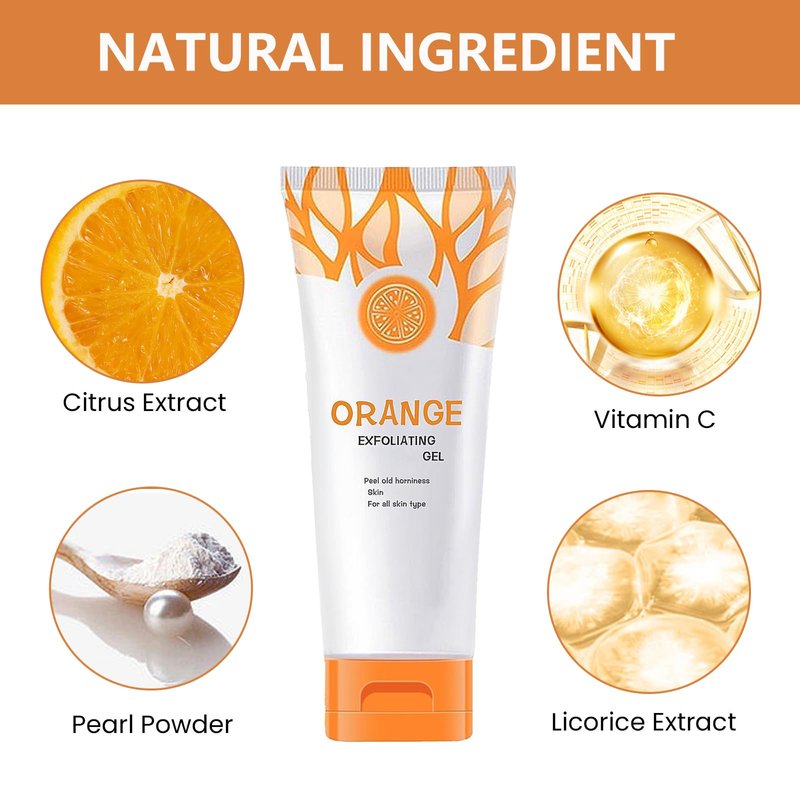 - 【Moisturize the Skin】Our orange exfoliating gel naturally strengthens the skin barrier by hydrating it. Effectively nourish the skin, let your skin smooth and stay supple even in dry weather.