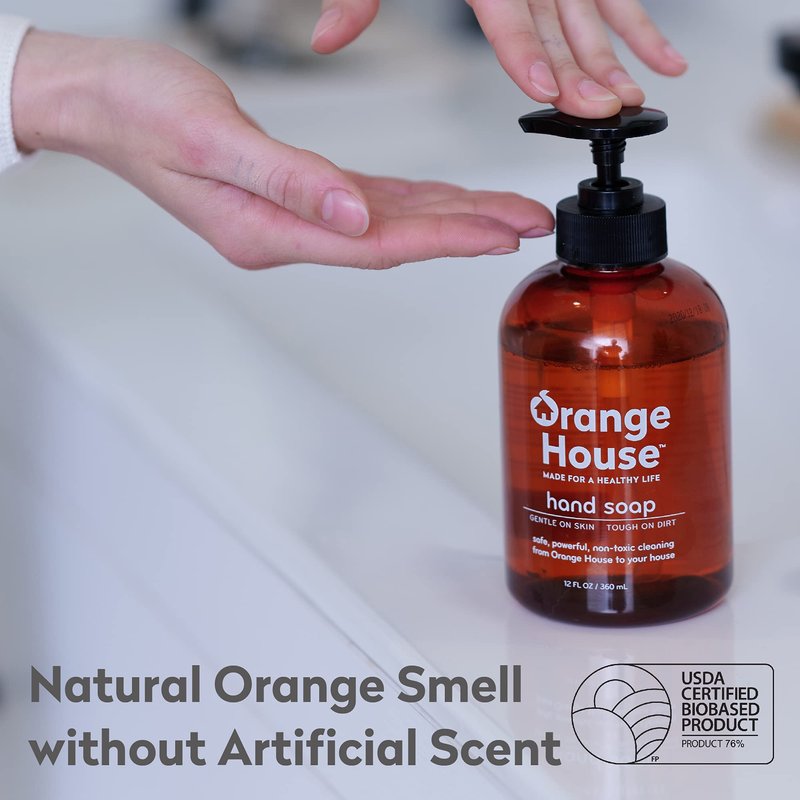 ORANGE HOUSE Natural Liquid Hand Soap with Food-Grade Orange Oil, Cruelty-free, Soft and Moisturizing, 12 Fl Oz