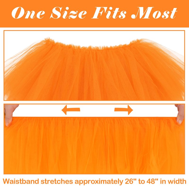 - SIZE INFORMATION: The tutu skirts for women is measuring approximately 10.5" in length. Our tutus are designed with a comfortable elastic waistband, which stretches approximately 26" to 48" in width and will fit most adult women.