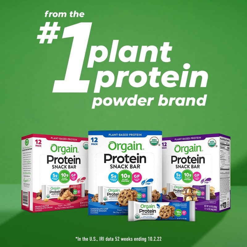 - Includes 12 Orgain organic chocolate chip cookie dough plant based protein bars