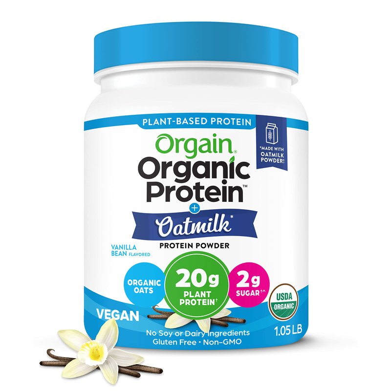 Orgain Organic Vegan Protein Powder + Oat Milk, Vanilla Bean - 20g Plant Based Protein, Gluten Free, No Dairy, Soy or Lactose Ingredients, Low Sugar, Non-GMO, Kosher, For Shakes & Smoothies - 1.05lb