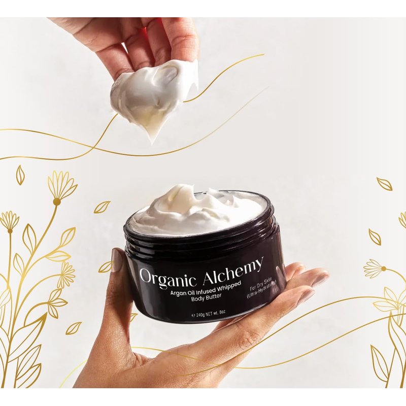 Organic Alchemy Whipped Argan Oil Body Butter for Dry Skin, Anti-Aging Body Cream Made for Women - Natural Skin Care, 8 OZ (Warm Vanilla Sugar)