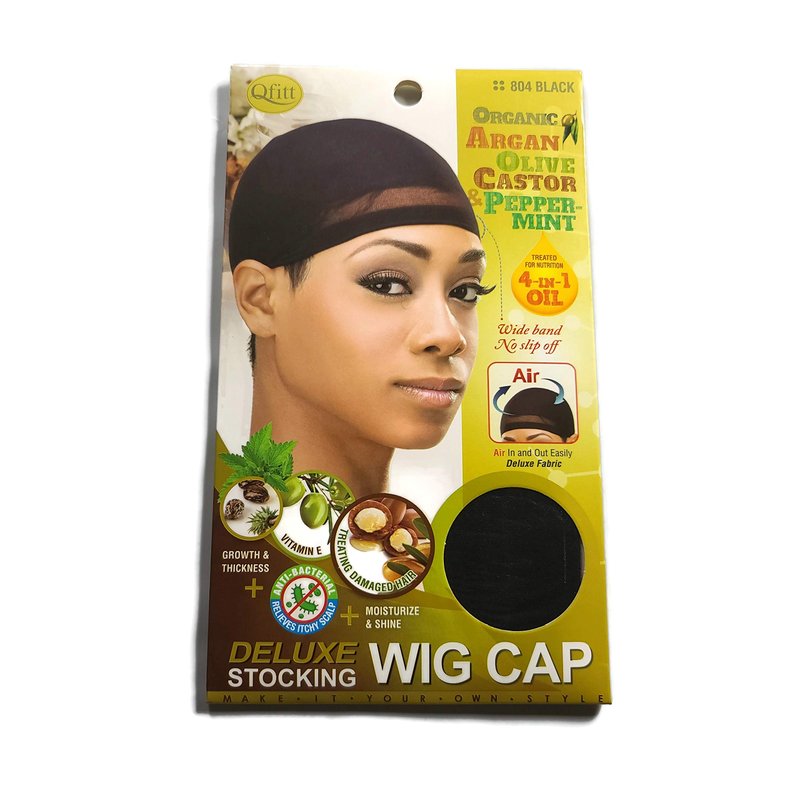 Organic Argan Olive Oil & Shea Butter Treated Deluxe Stocking Wig Cap #804 Black