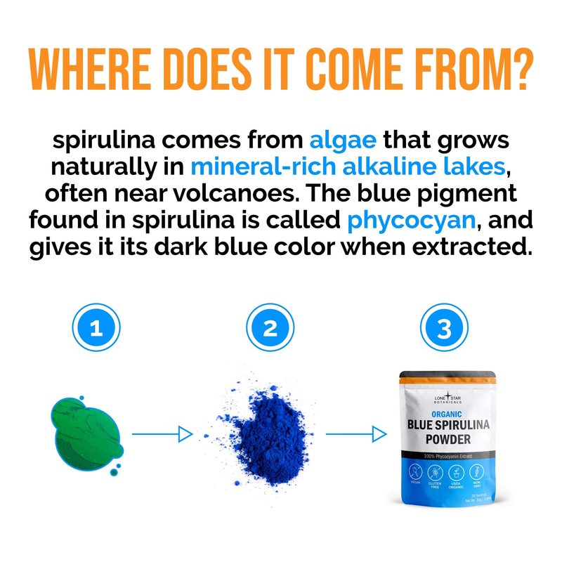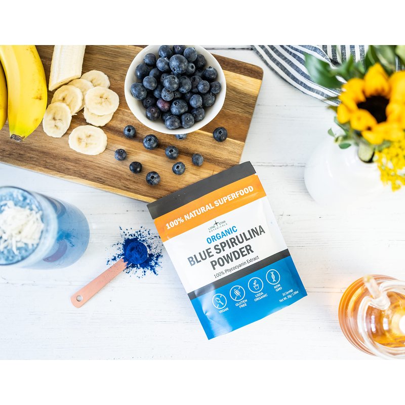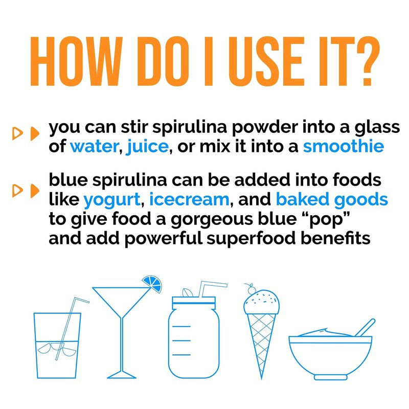 Organic Blue Spirulina Powder - 100% Pure Superfood, Blue-Green Algae, No Fishy Smell, Natural Food Coloring for Smoothies & Protein Drinks - Non GMO, Gluten-Free, Vegan + USDA Certified, 30 Servings