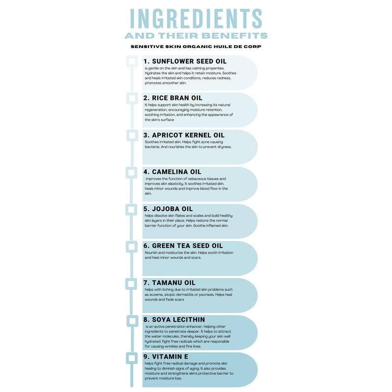 Organic Body Oil for Sensitive Skin 200ml Eczema Psoriasis Rosacea