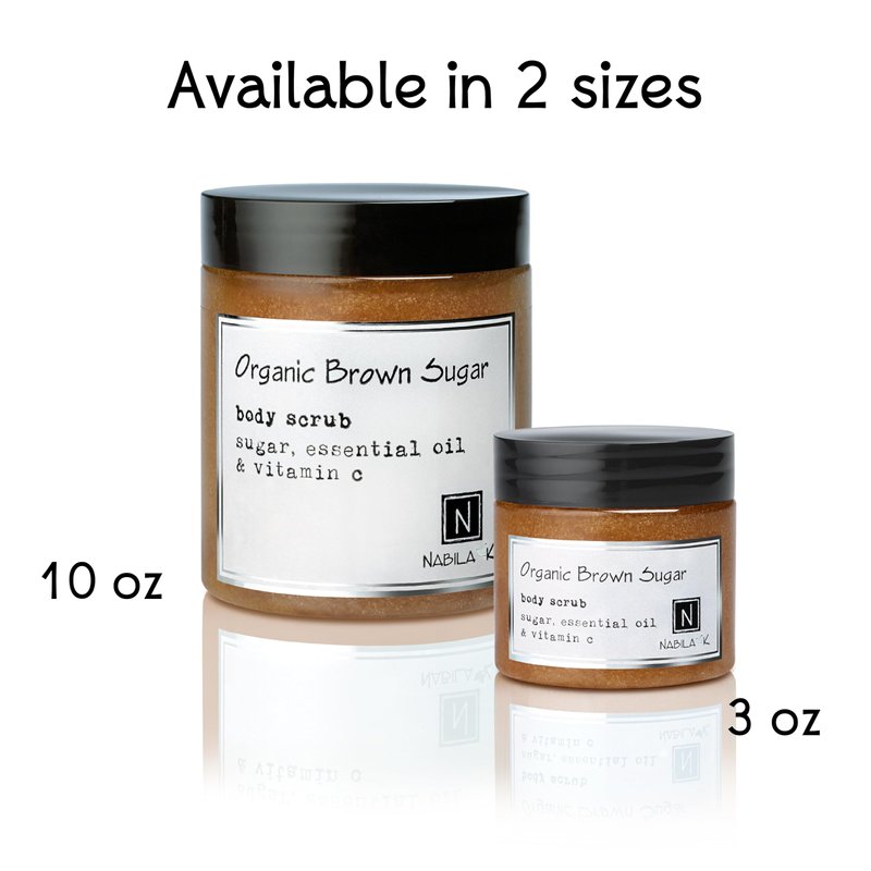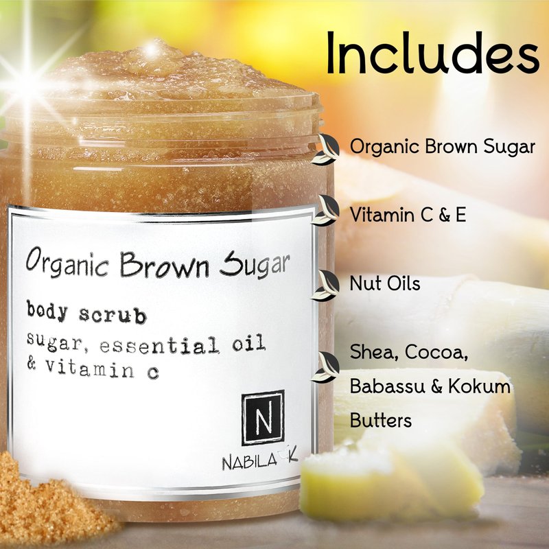 Organic Brown Sugar Body Scrub Made in USA with Essential Oil and Vitamin C by Nabila K - Exfoliate and Moisturize for Smooth Skin - Luxury for Women & Men, 3 oz