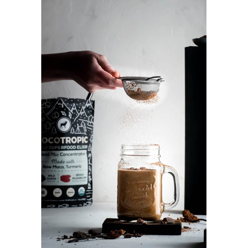 - Benefits: Wild Food's Chocolate mushroom cocoa powder provides sustained energy, is crash-free so you can avoid those afternoon slumps, and doesn’t come with the adrenal issues of coffee. It’s the perfect choice for anyone aiming to enhance their mental performance and health at the same time!