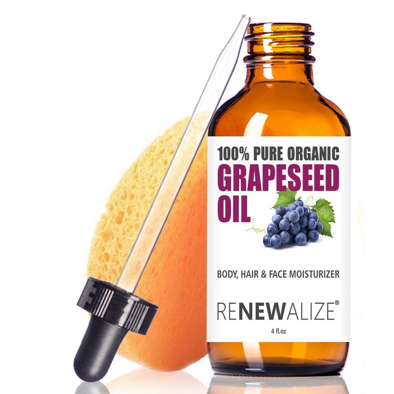 ORGANIC GRAPESEED OIL Anti-Aging Moisturizer - Facial Cleanser in 4 oz Glass Bottle | Unrefined, Cold Pressed Grape Seed Oil | Essential to Reduce Skin Wrinkles and Stretch Marks
