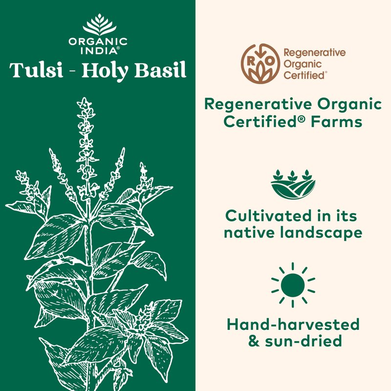 - QUEEN OF HERBS - Cherished in India as the “Queen of Herbs,” Tulsi promotes a sense of calm well-being. Formulated from USDA-Certified Organic herbs, our blend is Tulsi in its purest form