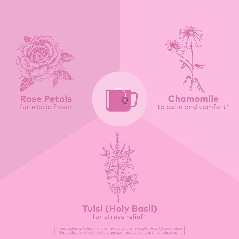 Organic India Tulsi Sweet Rose Herbal Tea - Holy Basil, Stress Relieving & Magical, Immune Support, Adaptogen, Vegan, USDA Certified Organic, Non-GMO, Caffeine-Free - 18 Infusion Bags, 1 Pack