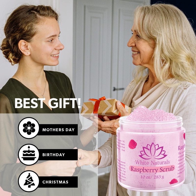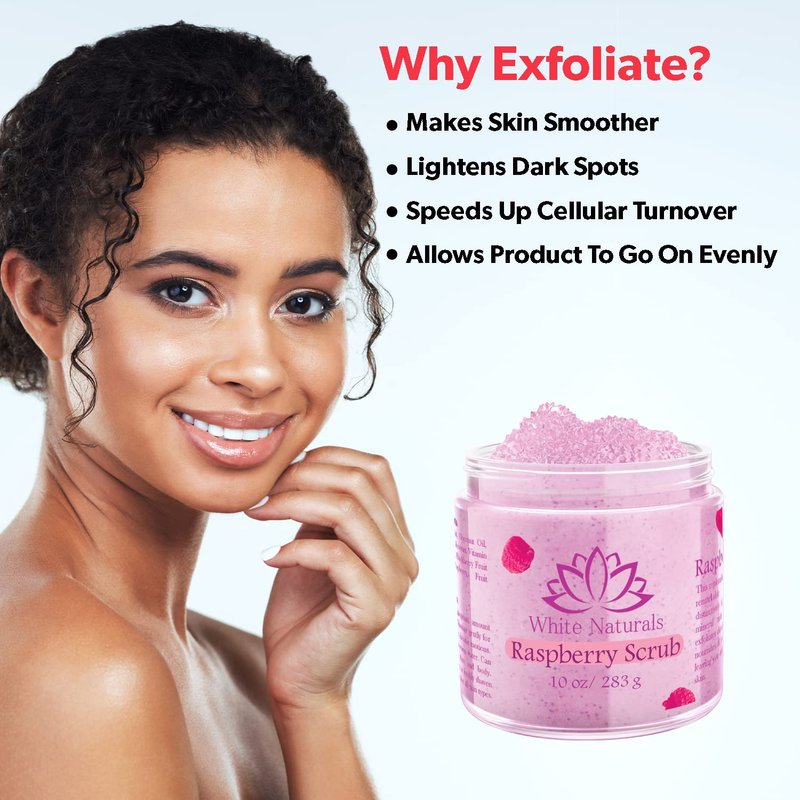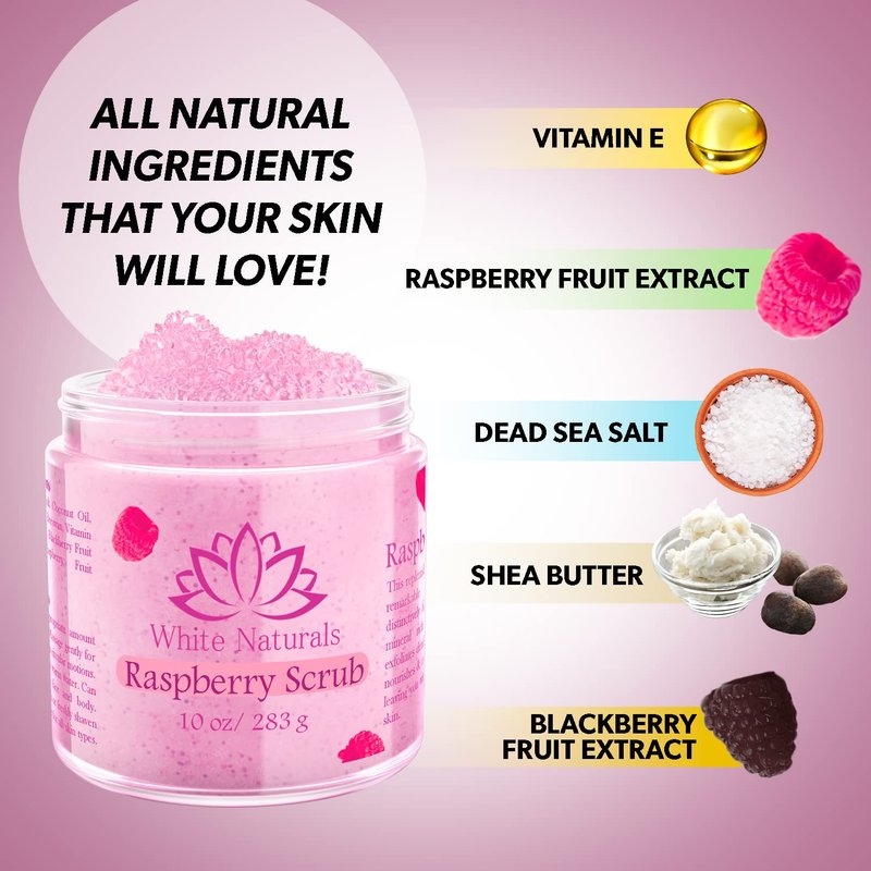 - FOR GLOWY SKIN: Enjoy smooth and soft skin with the White Naturals Raspberry Scrub, a must-have skincare product in your routine. Easy to use and very gentle to your skin, this skin exfoliator is a great option for getting rid of dead skin cells and flakiness.